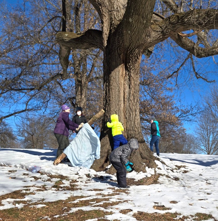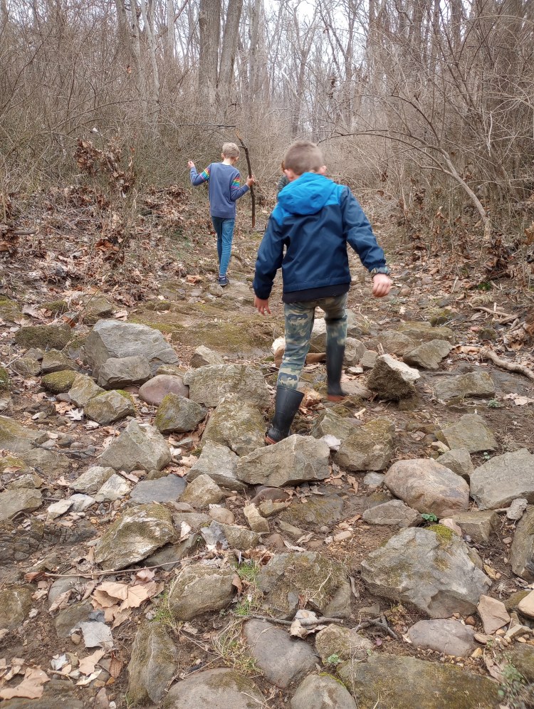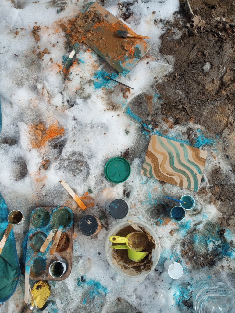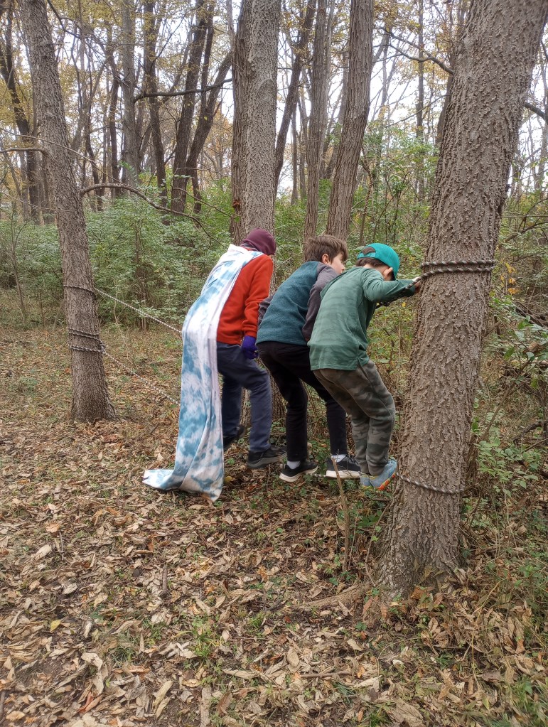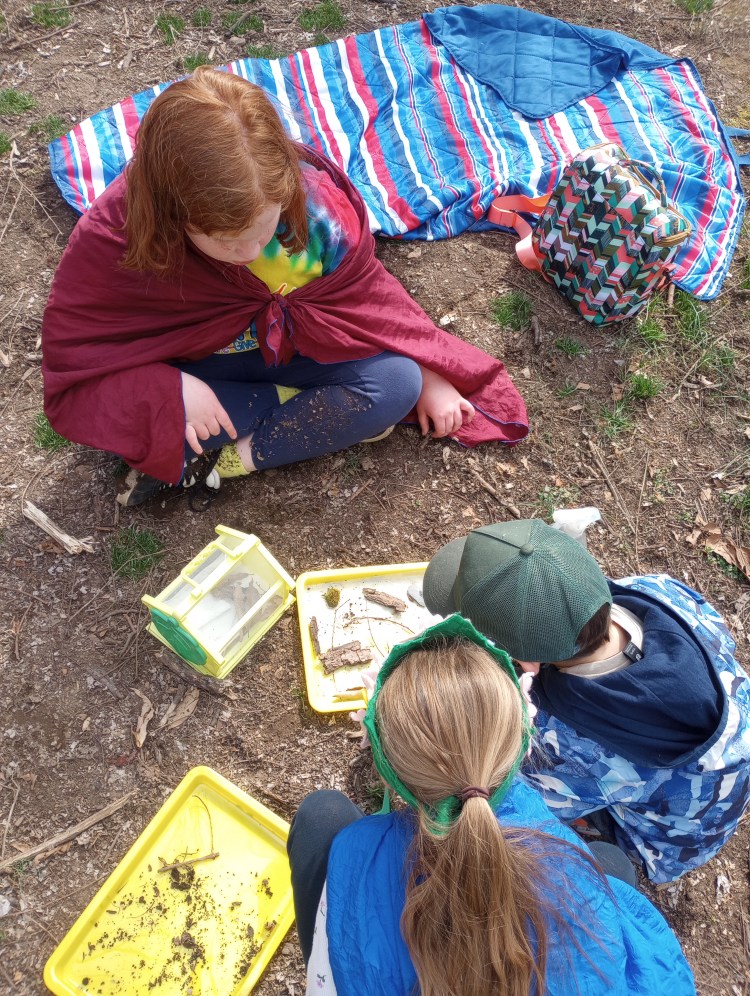 In our homeschool enrichment group, children ages 6–12 spend their time 100% outdoors exploring, creating, and playing freely within a small, mixed-age community.